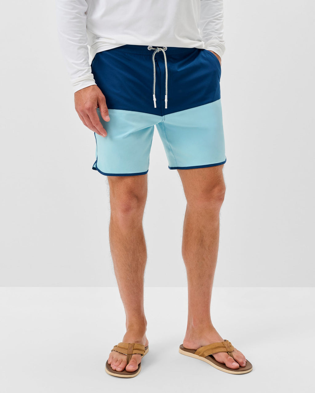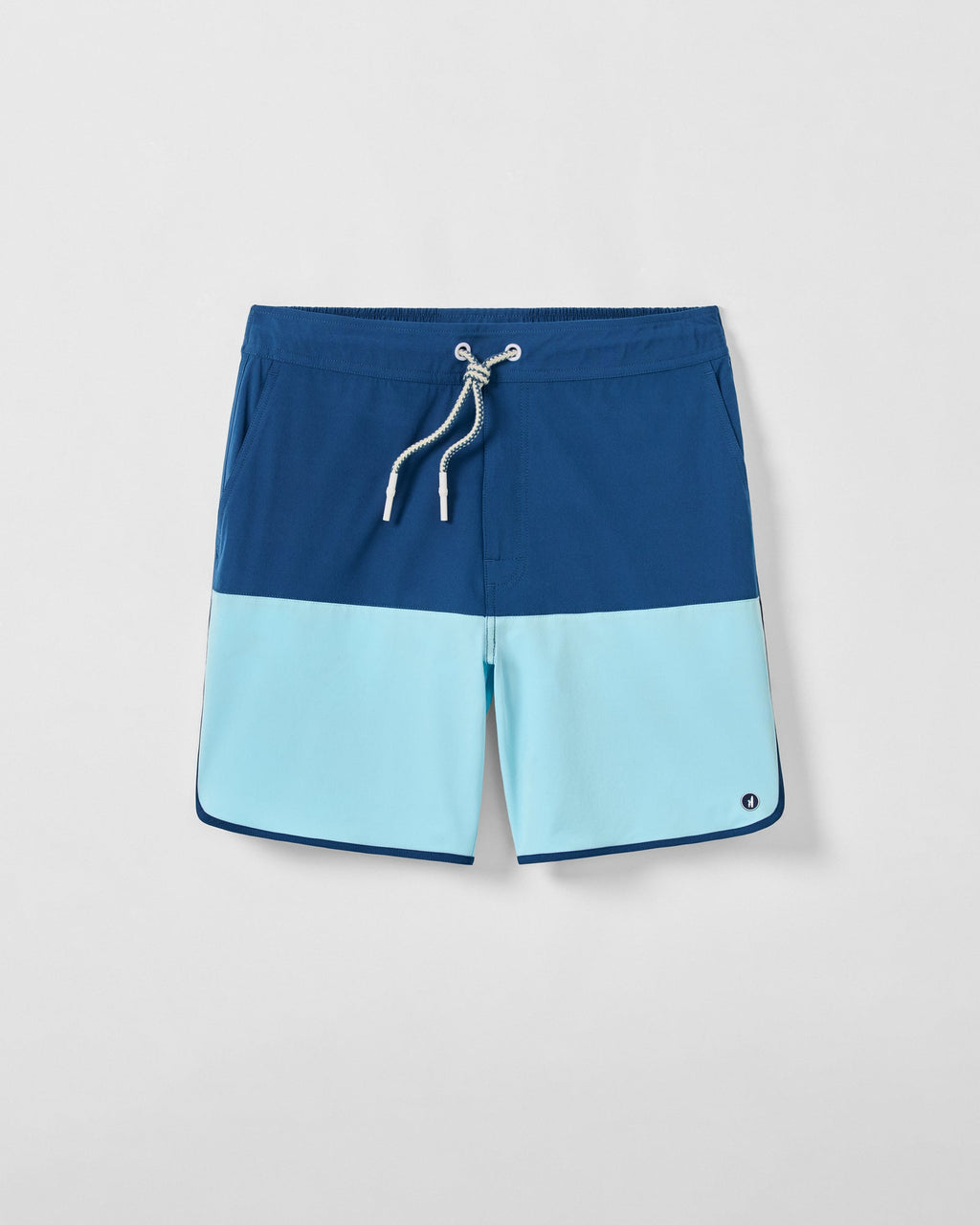Dive into retro style with the Tully swim short, featuring a striking color-blocked pattern and distinctive scalloped hem. Crafted from quick-drying fabric with soft netting lining, it keeps you comfortable from pool to beach. The 7" inseam sits above the knee for a classic, flattering fit. Pair with our Dale T-Shirt for the complete Johnnie-O beachside aesthetic.