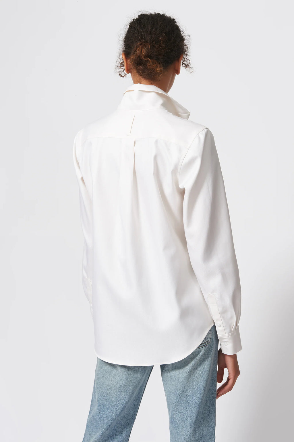 The Box Pleat Ginna Tailored Shirt offers a refined silhouette designed for dynamic days requiring both style and ease. Featuring a clean box pleat back and a versatile single-piece collar that can be worn up or down, this shirt masterfully combines structured tailoring with comfortable wear. Its precise cut ensures a polished appearance while adapting seamlessly to your changing mood and demands.