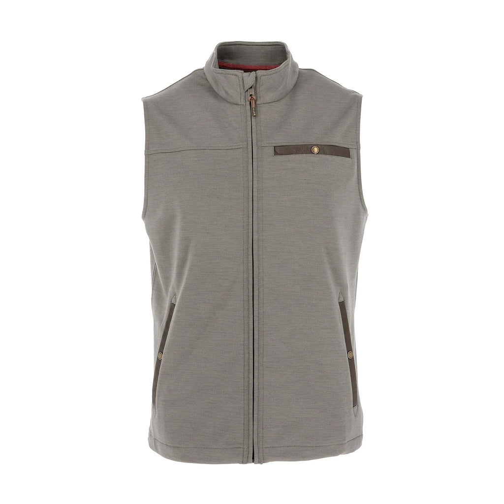 The Tucker Fleece Vest merges wool's natural warmth with low-maintenance synthetic performance for a versatile three-season layer. Engineered with four-way stretch and thermal insulation, the soft, low-bulk knit moves with you while maintaining its shape. A standing collar shields against wind, while the full-length zipper enables quick layering adjustments. Three secure pockets—chest and dual handwarmers with antique brass snaps—keep essentials close. Finished with contrast neck piping that honors our Alabama heritage, this vest delivers refined functionality for both trail and town.