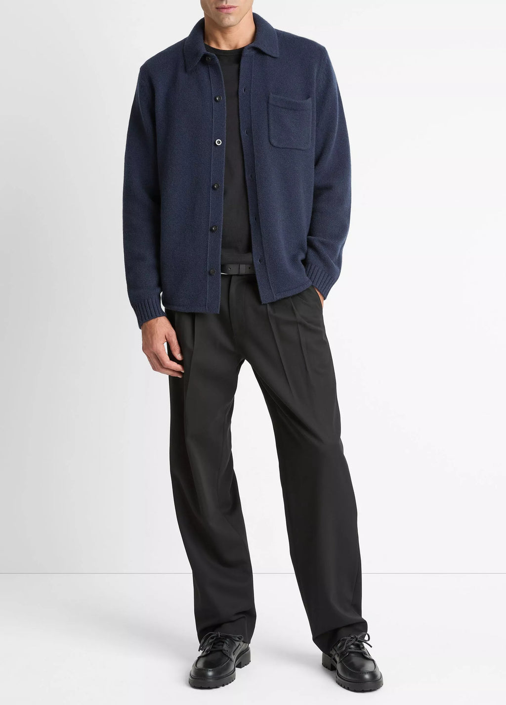 The Contour Hem L/S Sweater Shirt merges tailored sophistication with everyday comfort. Crafted from pure wool, this hybrid layer delivers the structured appeal of a button-up shirt—complete with a refined collar and functional chest pocket—while maintaining the warmth and tactile luxury of a premium sweater. The lightweight wool construction provides exceptional breathability without sacrificing insulation, making it an ideal transitional piece for layering or standalone wear. Its versatile design transitions seamlessly from casual to business-casual settings.