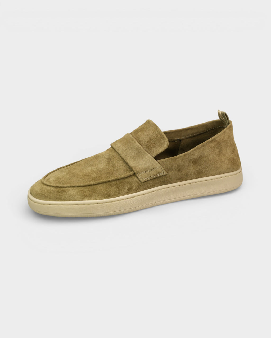Leisure and sporty styles come together perfectly in Officine Creative's handcrafted Herbie penny loafers. Made from supple taupe suede, they feature a rounded almond toe design, a flexible natural latex sole and the signature grosgrain heel loop tab.