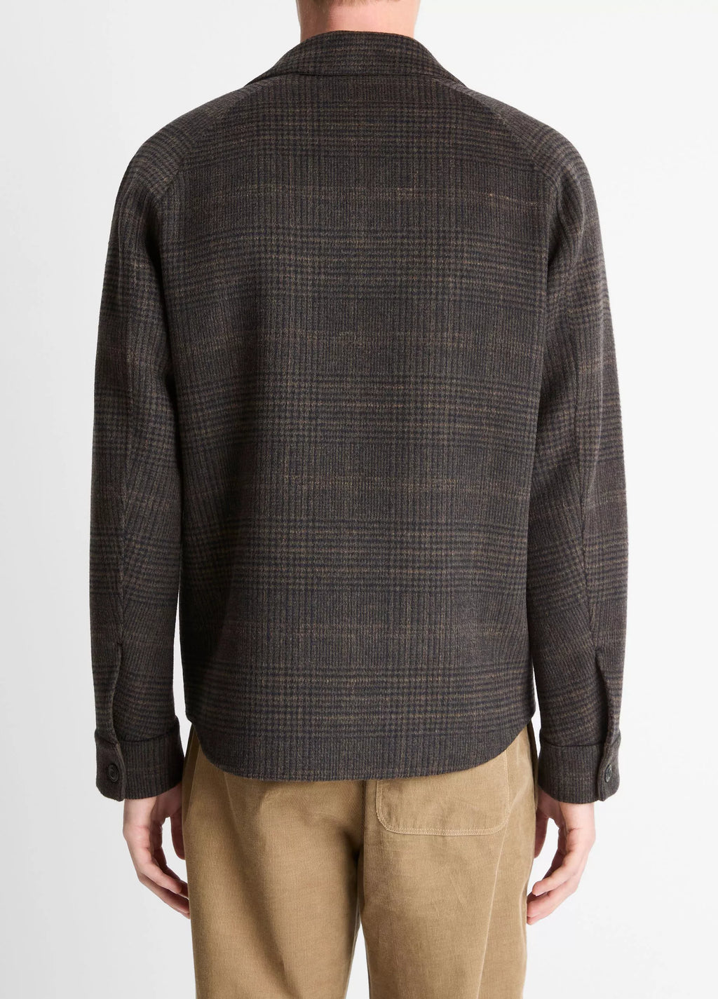 Engineered from a splittable wool blend, this plaid shirt jacket delivers lightweight warmth with a refined aesthetic. Minimalist design details—including concealed side-seam pockets and a hidden placket—enhance its sophisticated versatility. Half raglan sleeves at the back provide subtle ergonomic advantages, facilitating unrestricted movement while maintaining a polished silhouette suitable for layering or standalone wear.
