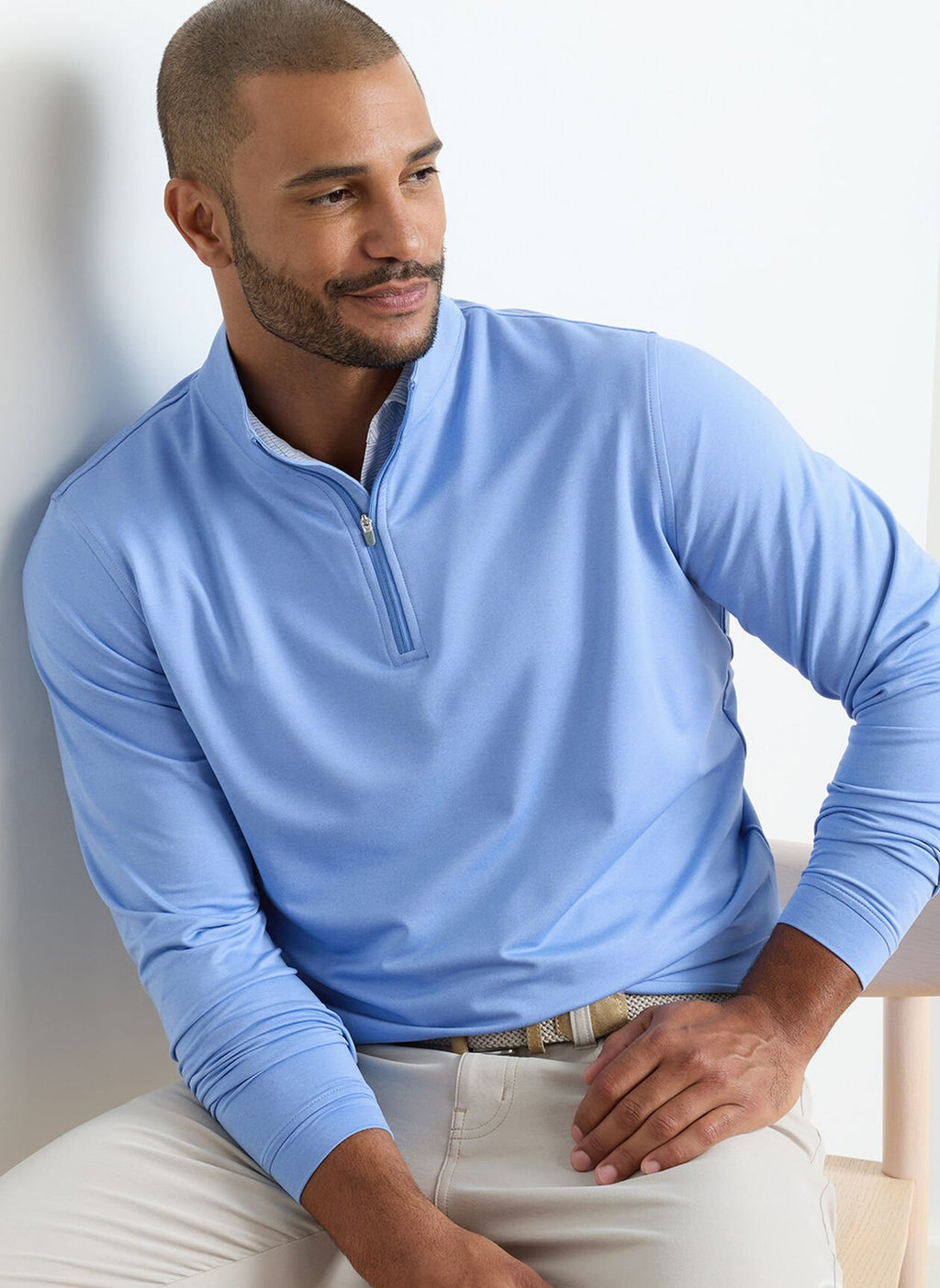 The Perth Melange Performance Quarter-Zip combines timeless design with modern athletic functionality. Crafted from our signature loop terry fabric, this quarter-zip features four-way stretch and moisture-wicking properties to keep you dry and mobile whether you're on the course or off. The mélange yarn construction delivers a refined, textured appearance, while the mock collar and banded cuffs and hem provide a polished finish. Low-maintenance and built for performance, this versatile layer adapts seamlessly to your active lifestyle.