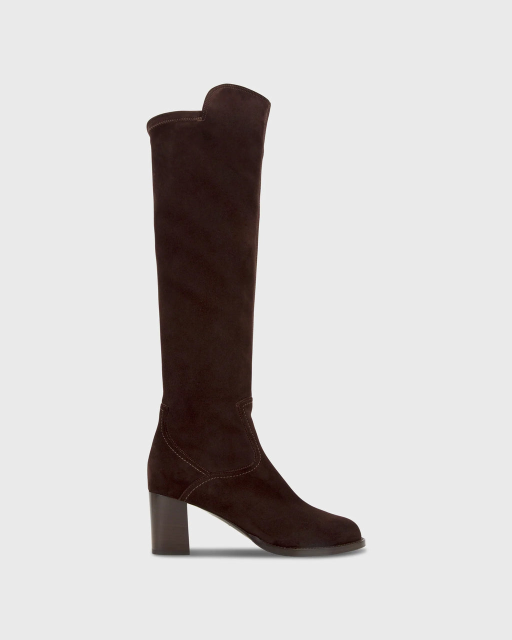 Engineered for refined elegance, these Italian-crafted pull-on boots feature luxurious stretch kid suede that contours seamlessly around the entire leg for a precision fit that endures repeated wear. The absence of elastic panels allows the suede to move naturally with your body, maintaining its shape and comfort over time. This sophisticated silhouette pairs effortlessly with diverse styling options—from tailored denim to flowing skirts and structured A-line cuts. A versatile investment piece that combines European craftsmanship with practical wearability for the discerning wardrobe.