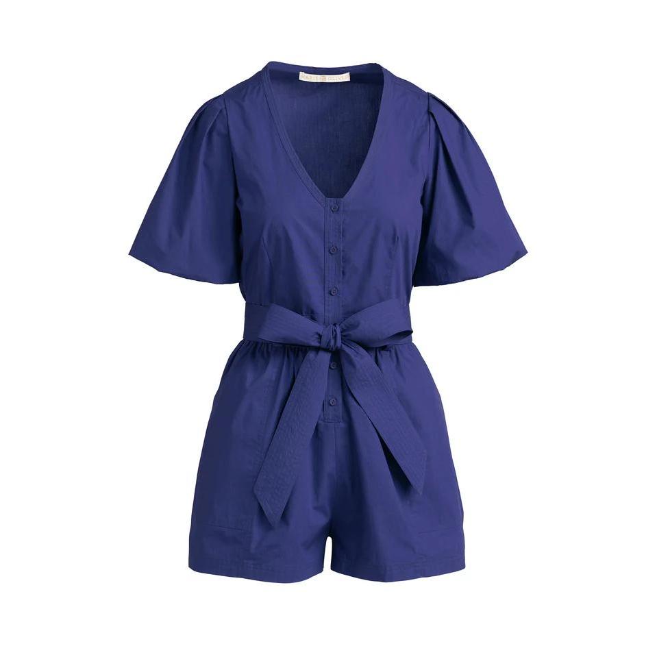 The Devin Romper is back for summer, blending playful style with thoughtful details for an effortlessly flattering look. Designed with trapunto stitching along the button-front placket and an extra-long tie belt, it cinches beautifully at the waist for a feminine silhouette. Pair it with your favorite wrap sandals for a sleek yet relaxed off-duty outfit perfect for warm days.