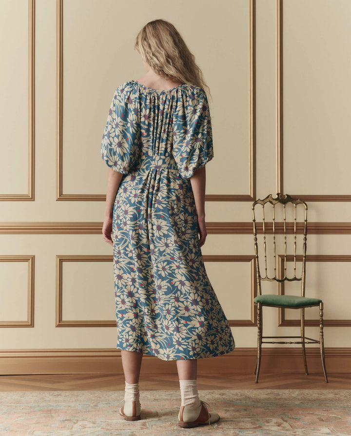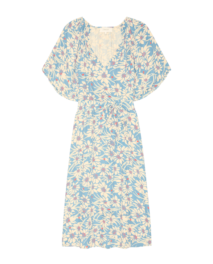 The Fairground Dress is an effortless pullover style that moves with you. A scooped neckline and deep slit create an open, airy feel, while structured puffed sleeves add dimension. The hem grazes just below the calf for a graceful silhouette. Cinch the included belt to define your waist, or wear it loose for relaxed elegance. Crafted from lightweight, drapey viscose in this season's Scattered Bloom Floral print, it's the perfect piece for warm-weather days and easy transitions from day to evening.
