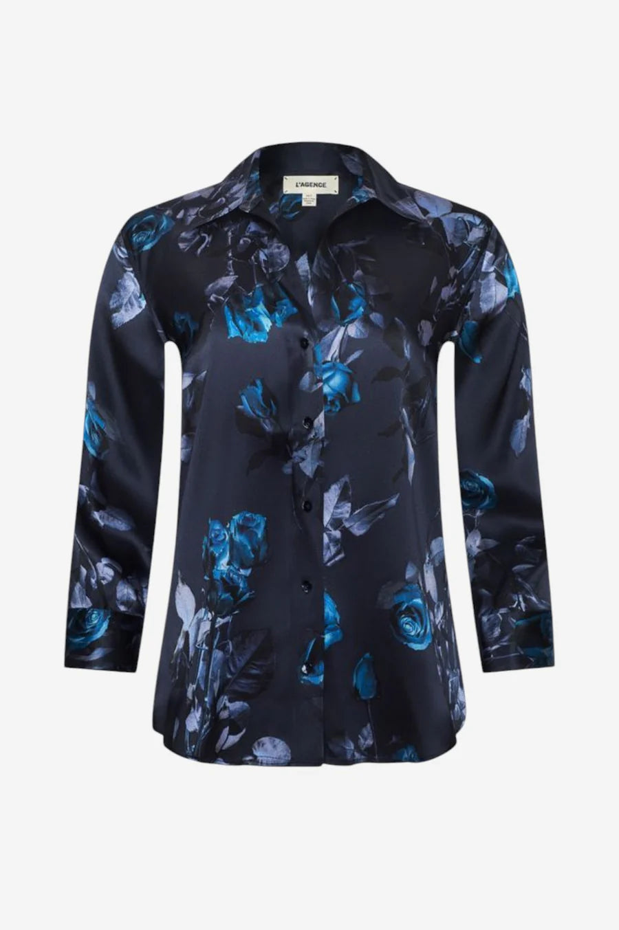 The Dani 3/4 Sleeve Blouse is a timeless silk essential crafted from luxurious 100% silk charmeuse. Its refined slim fit and front button closure offer effortless sophistication, while the 3/4 length sleeves provide versatile styling for any season. The high-low shirttail hem adds subtle movement and dimension, making this piece equally polished tucked in or worn loose. A wardrobe cornerstone that transitions seamlessly from office to evening.